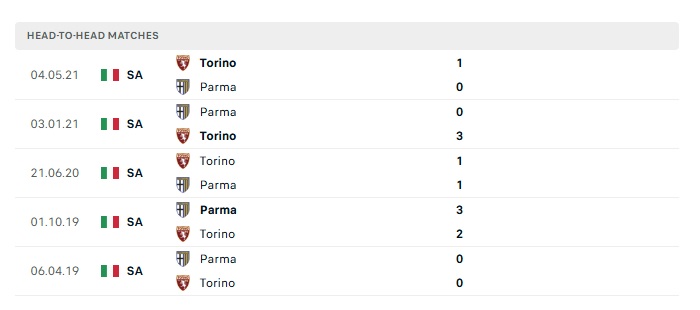 - Kèo tỷ số H2 Torino vs Parma: 2-1
