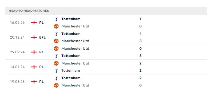 • Kèo tỷ số H2 Tottenham vs Man Utd: 2-2