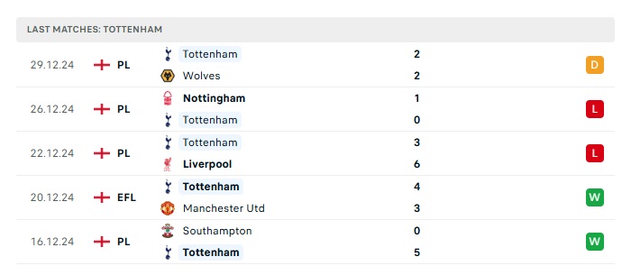- Phong độ gần đây Tottenham