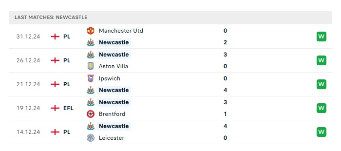 - Phong độ gần đây Newcastle
