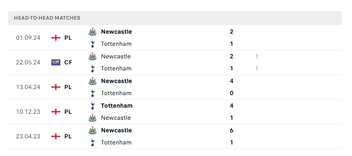Lịch sử đối đầu Tottenham vs Newcastle