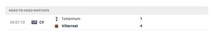 • Kèo tỷ số H2 Tottenham vs Villarreal: 1-0