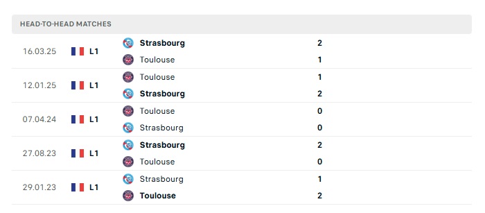 Lịch sử đối đầu Toulouse vs Strasbourg