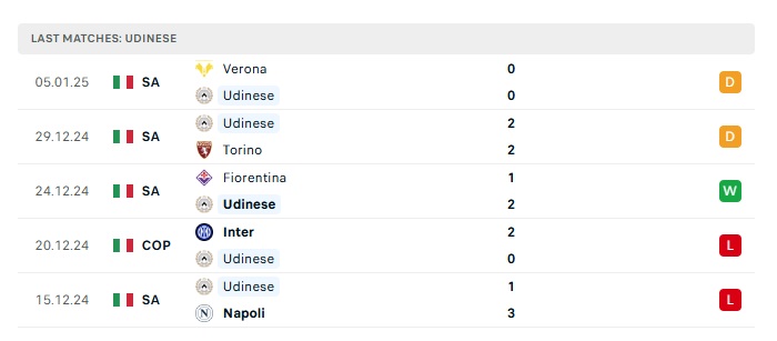 Như đã đề cập thì Udiense hiện tại đang có phong độ thi đấu không quá tệ so với đối thủ Atalanta. Trong 5 vòng đấu gần nhất của đội chủ nhà, họ đã có cho mình 2 thắng, 2 hòa và chỉ thua 1 trận duy nhất. Trong khi đó thì Atalanta đang thua 2, thắng 3 và hòa 1 trong 6 trận trên toàn đấu trường. Như vậy, với phong độ trên thì đội chủ nhà cũng chỉ có thể hy vọng về 1 điểm mà mình sẽ có trước đối thủ.