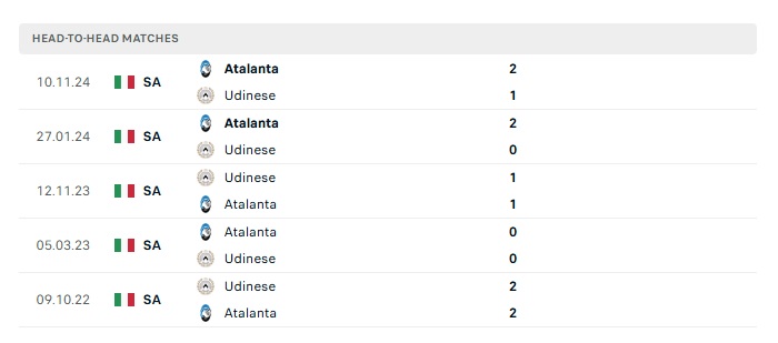 - Kèo tỷ số H2 Udinese vs Atalanta: 0-2