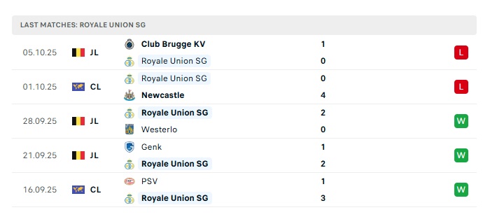Phong độ gần đây Union Saint-Gilloise vs Inter Milan