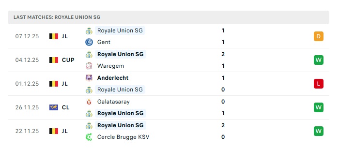 - Phong độ gần đây Union Saint-Gilloise