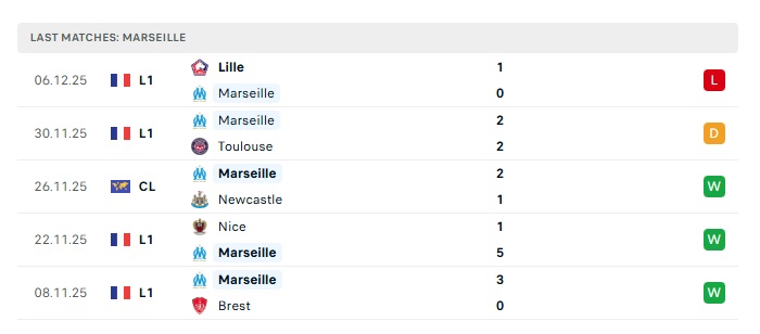 - Phong độ gần đây Marseille