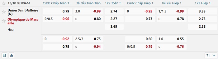 Bảng tỷ lệ kèo nhà cái Union Saint-Gilloise vs Marseille