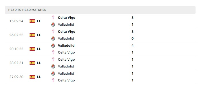 Lịch sử đối đầu Valladolid vs Celta Vigo
