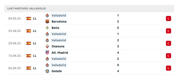 - Phong độ gần đây Valladolid