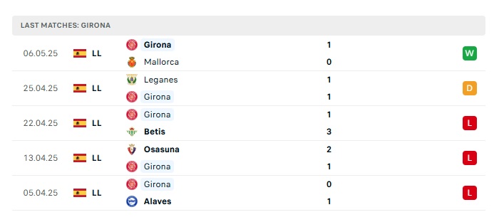 - Phong độ gần đây Girona