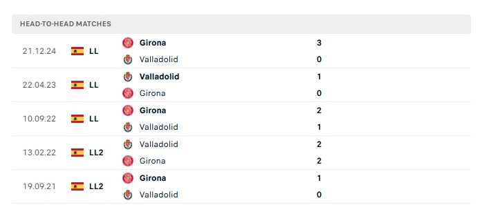Lịch sử đối đầu Valladolid vs Girona