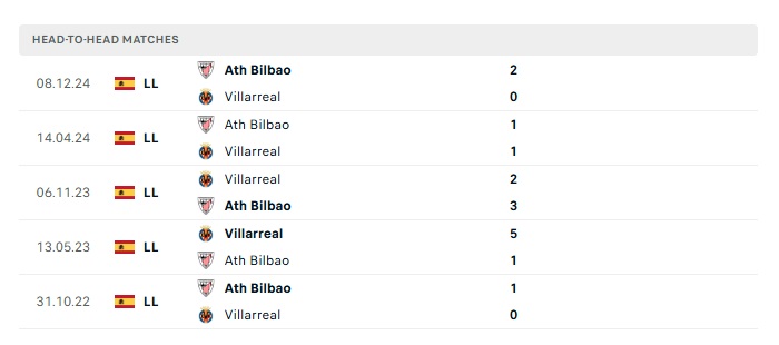Phong độ gần đây Villarreal vs Athletic Bilbao