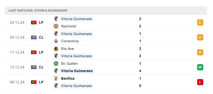 Phong độ gần đây Vitoria Guimaraes vs Sporting Lisbon