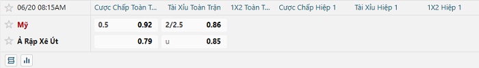 Bảng tỷ lệ kèo bóng đá hôm nay Mỹ vs Arập Xêut