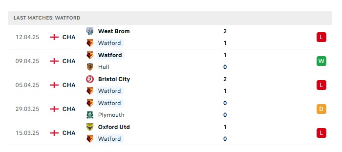 - Phong độ gần đây Watford