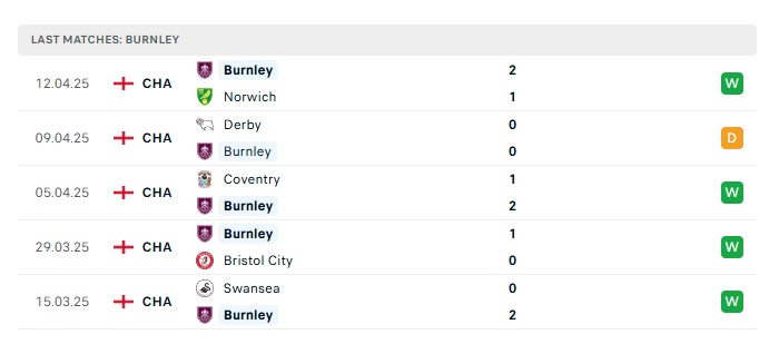 - Phong độ gần đây Burnley