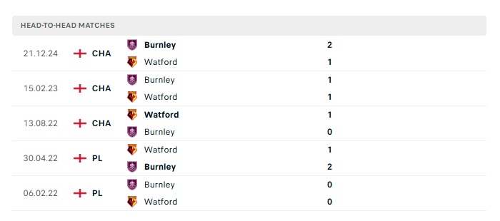 Lịch sử đối đầu Watford vs Burnley
