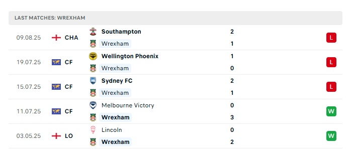 - Phong độ gần đây Wrexham