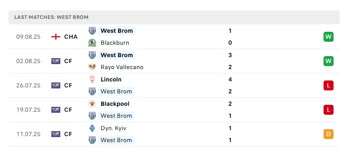 - Phong độ gần đây West Brom