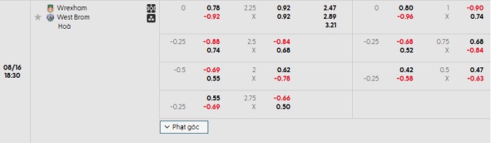 Soi kèo châu Á, kèo Wrexham vs West Brom