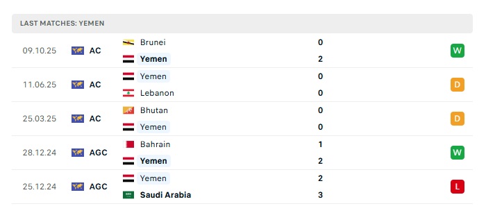 - Phong độ gần đây Yemen