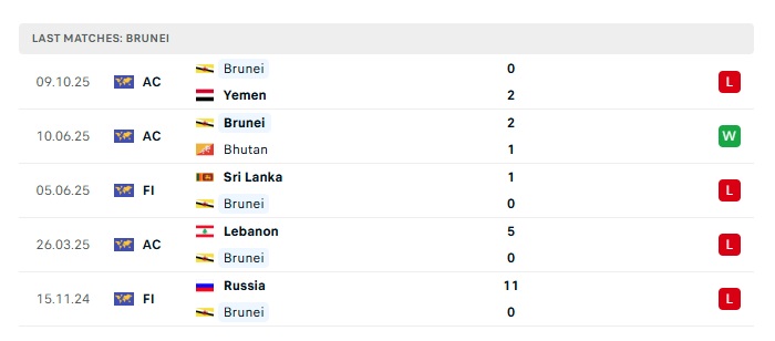 - Phong độ gần đây Brunei