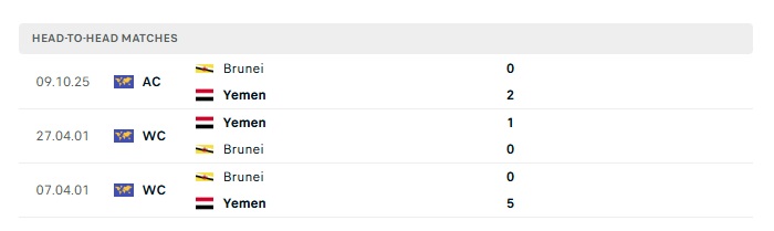 Lịch sử đối đầu Yemen vs Brunei